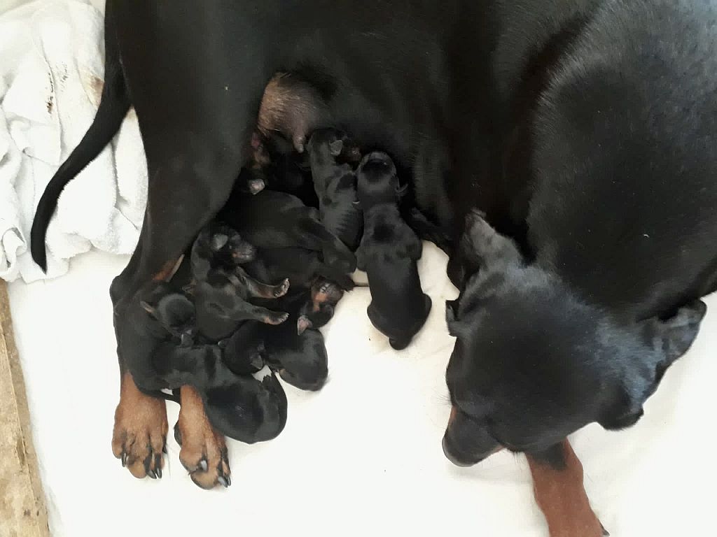 Nach 4 Uhr in der Früh bis Mittags gegen 14 Uhr brachte Herzogin Heidi 11 kleine schwarze Welpen zur Welt!